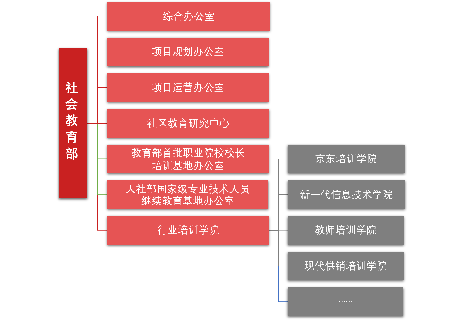 2010年,经教育部批准,国家开放大学成立了教育部社区教育研究培训中心(以下简称中心),2018年,中心与社会教育部合并,按照“两块牌子、一套人马”的运行机制开展相关业务。2016年,经人社部批准,国家开放大学成为国家级专业技术人员继续教育基地。2020年,经教育部批准,国家开放大学成为首批职业院校校长培训基地。此外,经学校批准,部门还设立了国家开放大学职业技能鉴定中心与国家开放大学社会考试服务中心。部门逐步打造形成了非学历教育招生、培训、鉴定、成果认证的生态服务链条。
