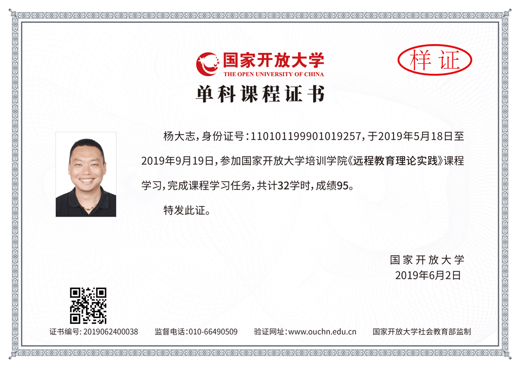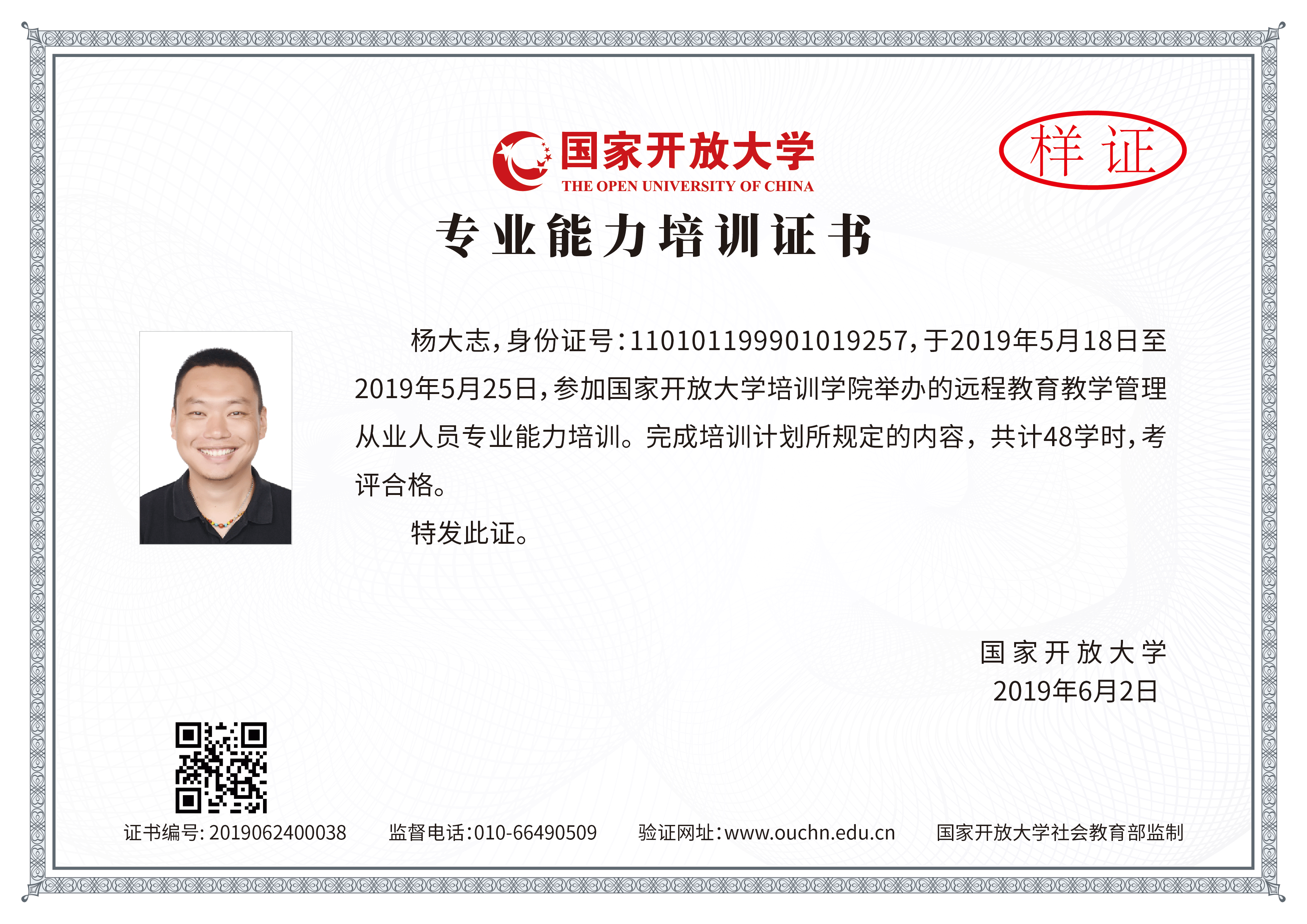 学习者参加由国家开放大学举办的非学历教育培训,考核合格后将获得国家开放大学非学历教育证书。这是记录其学习经历、文化知识、技能水平和申请国家开放大学学习成果认定、积累和转换的有效凭证。此证书由部门按照 “统一标准、统一发放、统一认证”原则,统筹归口管理。参考证书管理办法