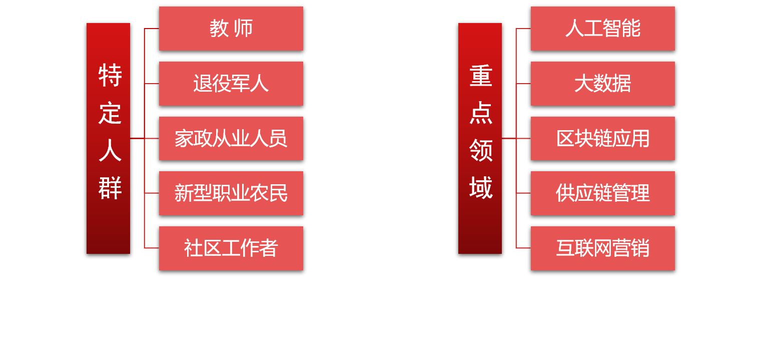 瞄准经济社会发展和国家战略需求,针对教师、退役军人、家政从业人员、新型职业农民、社区工作者、在线学习服务师等人群,设计研发一系列非学历品牌项目。适应新时代科技革命与产业变革,在人工智能、大数据、区块链应用、供应链管理、互联网营销等培训领域,开展高端培训服务,将国家开放大学打造成为“新一代信息技术”人才培养的国家品牌。